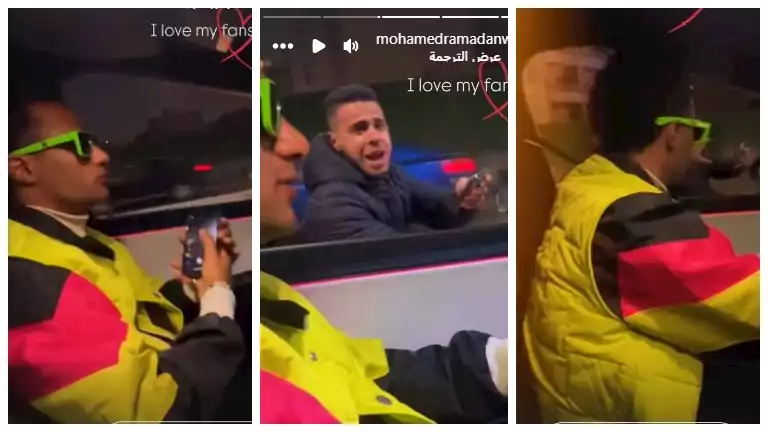 محمد رمضان يلتقط صورة سيلفي مع أحد المعجبين على “الطريق الس