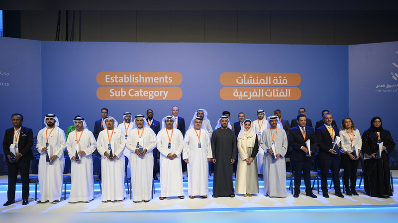 وتوجّه الدكتور عبدالرحمن العور بالشكر لسمو الشيخ منصور بن زايد آل نهيان، لرعايته الكريمة ودعمه للجائزة، وقال: «الاحتفاء بالفائزين بالدورة الأولى من جائزة الإمارات للريادة في سوق العمل، يشكّل مرحلة جديدة من مراحل مسيرة التميز والريادة في سوق العمل الإماراتي». وأضاف: «إن هذه الجائزة انعكاس للتطوّر المذهل الذي يشهده الاقتصاد الوطني وسوق العمل، إذ تشير تقديرات صندوق النقد الدولي إلى نمو الناتج المحلي الإجمالي للدولة هذا العام بواقع 3.5%، ونمو اقتصاد الإمارات غير النفطي بواقع 4.5%، وفق توقعات البنك الدولي. وتشير بياناتنا إلى ارتفاع بنسبة 38% في تسجيل منشآت القطاع الخاص الجديدة بنهاية الربع الثالث، مقارنة بالفترة ذاتها من العام الماضي، إضافة إلى ارتفاع بنسبة 79% في تصاريح العمالة الماهرة الجديدة، وهذا يؤكد النجاحات منقطعة النظير لتشريعات وسياسات سوق العمل العصرية والمرنة».