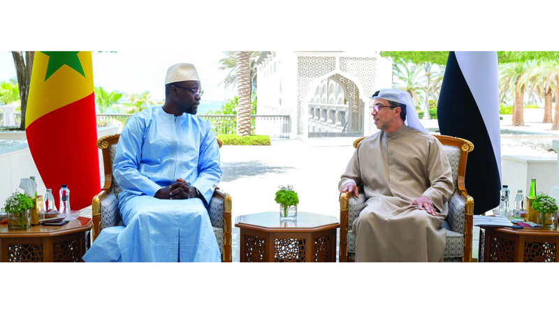 استقبل سمو الشيخ منصور بن زايد آل نهيان، نائب رئيس الدولة نائب رئيس مجلس الوزراء رئيس ديوان الرئاسة، أمس، بقصر الوطن في أبوظبي، رئيس وزراء جمهورية السنغال، عثمان سونكو.