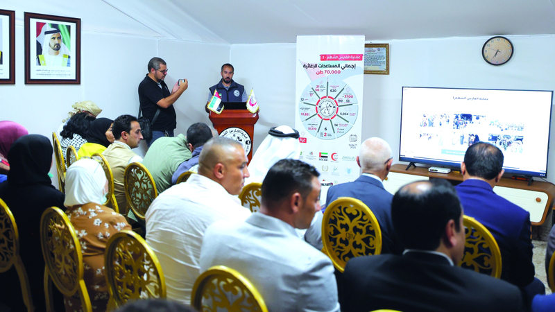 كما اطلع الوفد على سير عمل عملية «الفارس الشهم 3» في العريش، التي تأتي ضمن جهود دولة الإمارات لإغاثة الأشقاء الفلسطينيين في قطاع غزة، حيث تعرّف الوفد إلى آلية إدارة العملية وأنواع المساعدات المقدمة التي تشمل الطرود الغذائية والصحية وطرود الطفل والمرأة وطرود الملابس للأطفال وغيرها من المساعدات الإغاثية المتنوعة، وشارك أعضاء الوفد في تعبئة عدد من هذه الطرود.