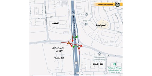 إغلاق الحارتين أسفل التقاطع المتجه من أبو حليفة إلى فهد الأحمد لمدة أسبوع