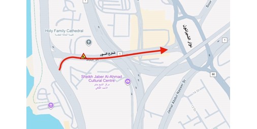 إغلاق كلي لشارع السور بداية من تقاطع مركز الشيخ جابر الثقافي مع شارع الخليج باتجاه دوار الشيراتون