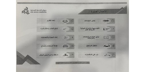 الديوان يمنح القياديين صلاحية توزيع درجات المهام الوظيفية الـ 10 المعدلة وأبرزها إنجاز الموظف ما كلف به رئيسه المباشر