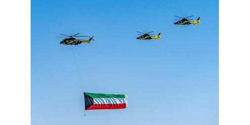 وازدانت سماء منطقة الأبراج بمقاتلات الجيش وهي (تايفون وهورنت F18) والطيران العمودي لوزارة الداخلية مشكلة بحركاتها ومناوراتها السريعة على علو منخفض مشهدا مهيبا لاقى تفاعلا واسعا من الجمهور المحتشد هناك وأضفى مشاعر من الفخر والاعتزاز بصقور البلاد الذين لا تغفل أعينهم عن حماية سماء الوطن من أي معتد كان كما حملت بعض الحوامات أعلام الكويت ابتهاجا بهذه المناسبات الوطنية.