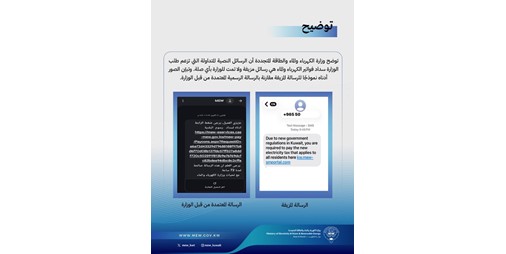 - طلب معلومات شخصية: لا تُطلب وزارة الكهرباء والماء والطاقة المتجددة معلوماتك الشخصية أو بياناتك المالية عبر الرسائل النصية.