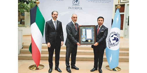 - تقليد اليوسف وسام «إنتربول» من الطبقة العليا تقديراً لدور الكويت وجهودها في دعم المنظمة