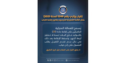 أعلنت وزارة الداخلية عن خطوة هامة نحو تنظيم شؤون الإقامة في البلاد، وهي تطبيق اللائحة التنفيذية لقانون إقامة الأجانب رقم 2249 لسنة 2025، وذلك ابتداءً من يوم الثلاثاء الموافق 23 من الشهر الجاري. هذا الإعلان يمثل تحديثًا شاملاً للإجراءات والقوانين المتعلقة بإقامة الوافدين، ويهدف إلى تبسيط العمليات، وضمان حقوق جميع الأطراف، وتعزيز الأمن والاستقرار. يركز هذا المقال على تفاصيل هذه اللائحة الجديدة وتأثيرها على المقيمين وأصحاب العمل في البلاد، مع تسليط الضوء على أهم التغييرات والمستجدات في قانون الإقامة الجديد.