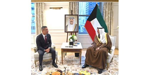 استقبل ممثل صاحب السمو أمير البلاد الشيخ مشعل الأحمد، سمو ولي العهد الشيخ صباح الخالد اليوم، عمدة مدينة ميامي فرانسيس سواريز في مقر إقامة سموه بمدينة نيويورك في الولايات المتحدة الأمريكية.