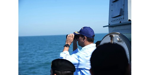 كما اشتملت الزيارة على جولة بحرية على متن زورق الاستقلال، شاهد خلالها عرضا ميدانيا، كما شهد تنفيذ رماية بالذخيرة الحية عكس مستوى التدريب والاحترافية العالية التي يتمتع بها منتسبو القوة البحرية.