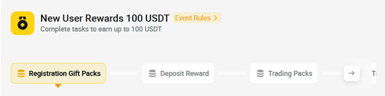 لمساعدة المستخدمين الجدد على التعود بسرعة على المنصة، قدمت BYDFi سلسلة من المهام البسيطة. بعد التسجيل، يمكن للمستخدمين المطالبة بمكافأة 100 USDT من خلال إكمال الخطوات التالية في غضون سبعة أيام: التحقق من أمان الحساب الملزم، وإجراء إيداع أولي، وإكمال تداولهم.