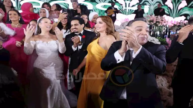 بحضور العوضي ونسرين طافش وحماقي.. 30 صورة من حفل زفاف ابنة ا