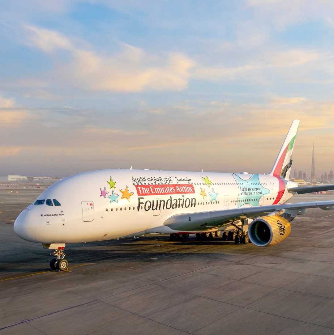 وقال بيان أصدرته المجموعة اليوم، للكشف عن كسوة جديدة لإحدى طائراتها من طراز إيرباص A380، تحمل شعار مؤسسة طيران الإمارات الخيرية، أوضحت المجموعة أن المشروعات تتم من خلال التبرعات السخية التي يقدمها مسافرو طيران الإمارات والمانحون وموظفو الناقلة، سواء على متن الطائرات أو عبر الإنترنت.