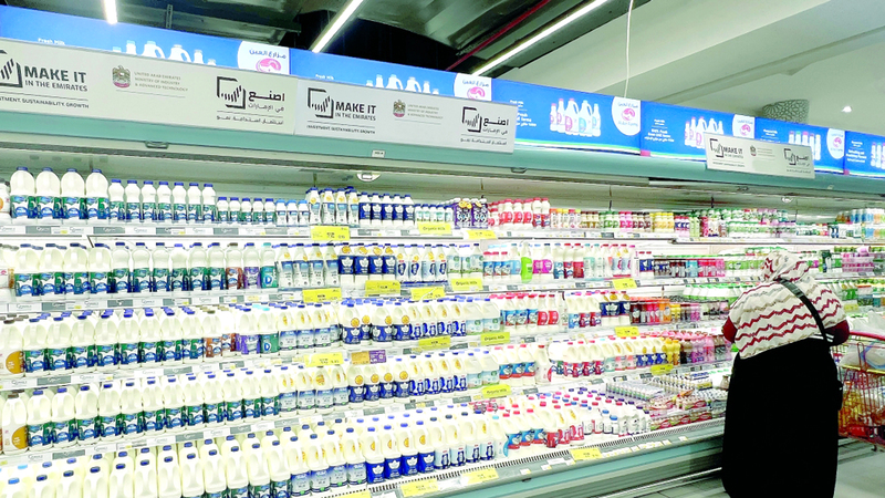 وأظهرت جولة لـ«الإمارات اليوم»، في عدد من المتاجر ومنافذ البيع الكبرى، أن السلع المُنتجة محلياً، المطروحة في منافذ بيع عدة، شملت طائفة واسعة من السلع الأساسية وغير الأساسية، والغذائية وغير الغذائية، مثل الدواجن المبردة والمجمّدة، والحليب والطحين والسكر والألبان والزبادي والأجبان بأنواعها المختلفة، والخضراوات المجمّدة، وقطع الدجاج المجمّد، والأرز والمعكرونة والزيوت والعصائر والمياه والمشروبات الغازية، والتمور والبهارات والحلويات والشوكولاتة وبعض أصناف الخضراوات والفاكهة، بجانب المناديل الورقية والمنظفات والمطهرات بأنواعها، وورق الألومنيوم وأكياس القمامة ومعطرات الجو وغيرها.