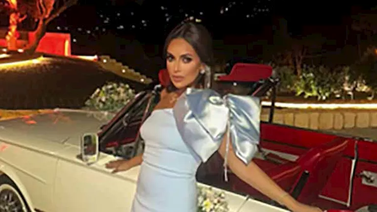 أمام سيارة فارهة.. إسراء عبدالفتاح بإطلالة أنيقة باللون السماوي (صور)
