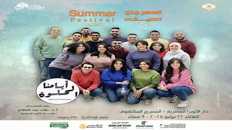 تتواصل فعاليات المهرجان الصيفي الذي تُنظّمه وزارة الثقافة من خلال دار الأوبرا المصرية برئاسة الدكتور علاء عبدالسلام، وتقدم فرقة أيامنا الحلوة بقيادة ورؤية المايسترو محمد عثمان في التاسعة مساء الثلاثاء 22 يوليو حفلا على المسرح المكشوف .