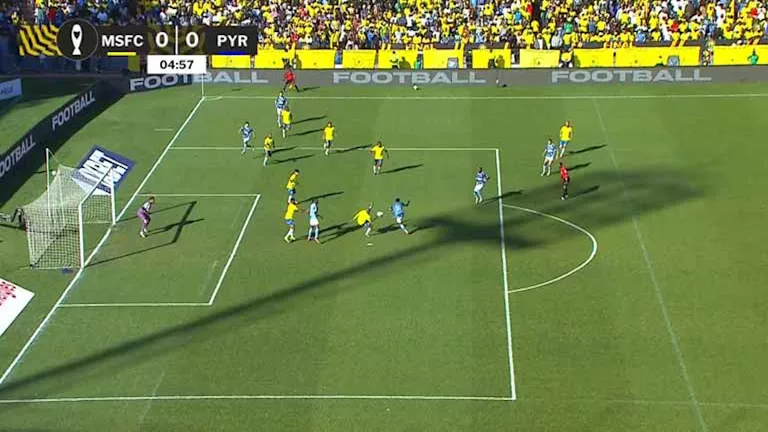 وطالب لاعبو بيراميدز بركلة جزاء في الدقيقة الخامسة من الشوط الأول في لقاء صن داونز، بعد تسديدة اصطدمت بلاعب الأخير داخل منطقة الجزاء.