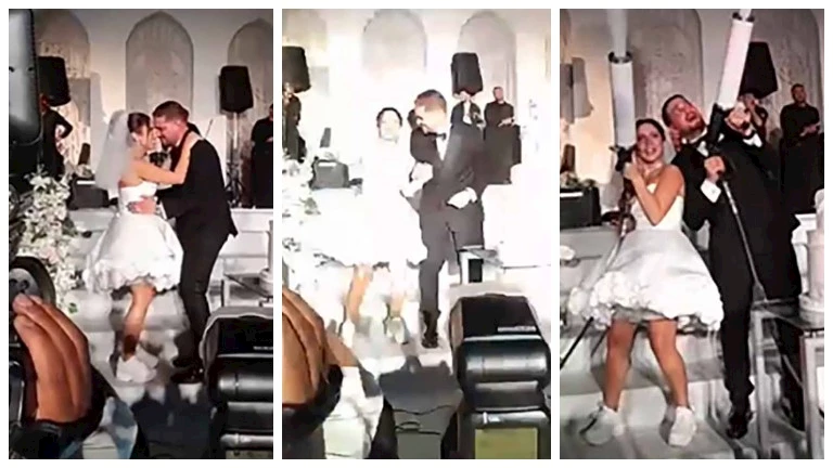 تألقت رنا رئيس في حفل زفافها وظهرت بإطلالتين، الأولى كانت عبارة عن فستان زفاف كلاسيكي بتصميم منفوش، والإطلالة الثانية كانت بفستان زفاف قصير فوق الركبة.