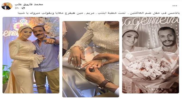 احتفل الفنان محمد فاروق علي الشهير بـ “سيد شيبا” من فيلم “إبراهيم الأبيض” بخطوبة ابنته مريم ونشر صور من حفل الخطوبة عبر حسابه الرسمي على “فيسبوك”.