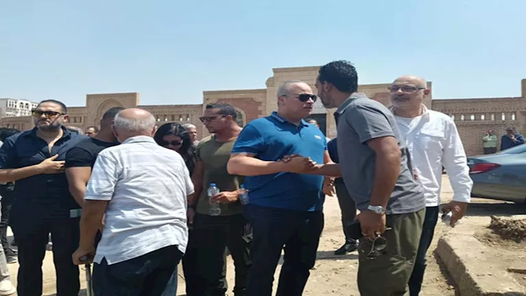 بالصور.. تامر عبدالمنعم وشقيقه يستقبلان عزاء والدهما بمدافن الأسرة