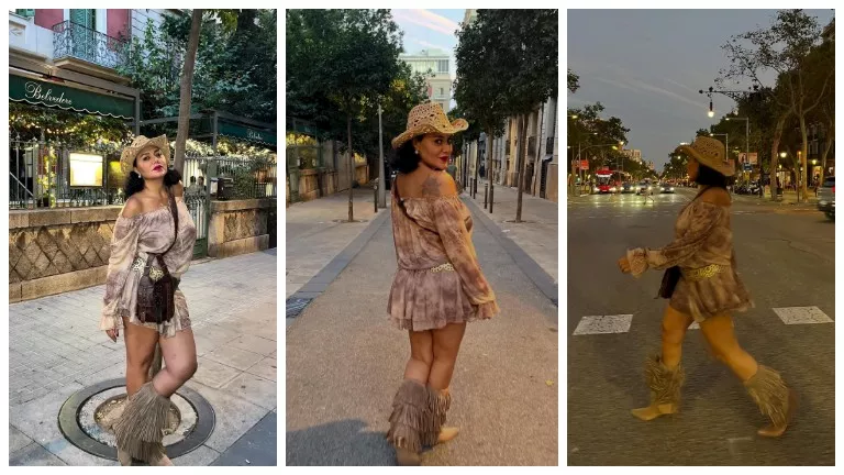 وظهرت رانيا يوسف بإطلالة كاجوال أنيقة، مرتدية فستان قصير وقبعة، وهي تتجول في شوارع برشلونة بإسبانيا.
