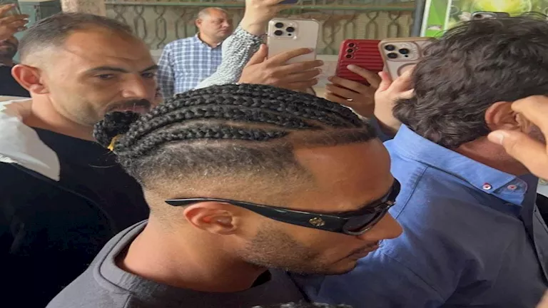 بالصور| محمد رمضان يستقبل مشيعي جنازة والده أمام مسجد مصطفى محمود