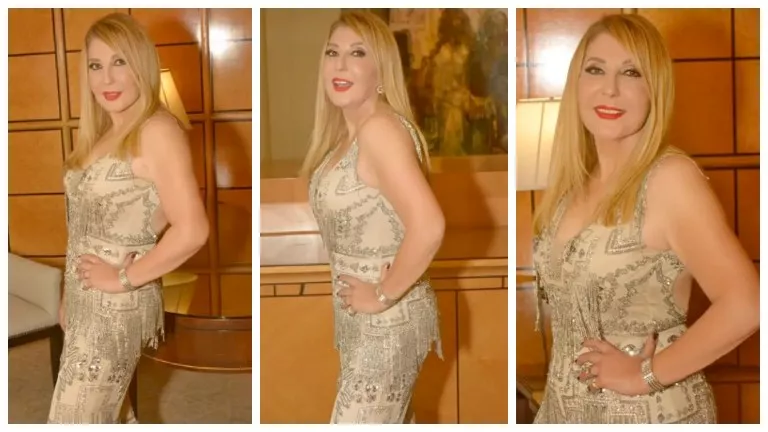 وارتدت جمبسوت مطرز أبرز رشاقتها وتناسقها وحفاظها على روح الشباب التي تتمتع بها.