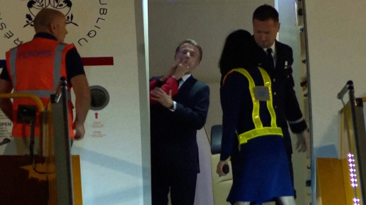 وفي وقت سابق، عرضت القنوات التلفزيونية الفرنسية لقطات لماكرون وهو يتلقى صفعة من زوجته بعد وصول الطائرة إلى هانوي الفيتنامية.