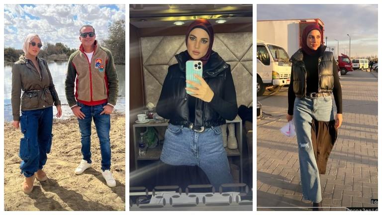 “بـ الحجاب”.. أحدث ظهور لـ درة في كواليس مسلسل “إثبات نسب”