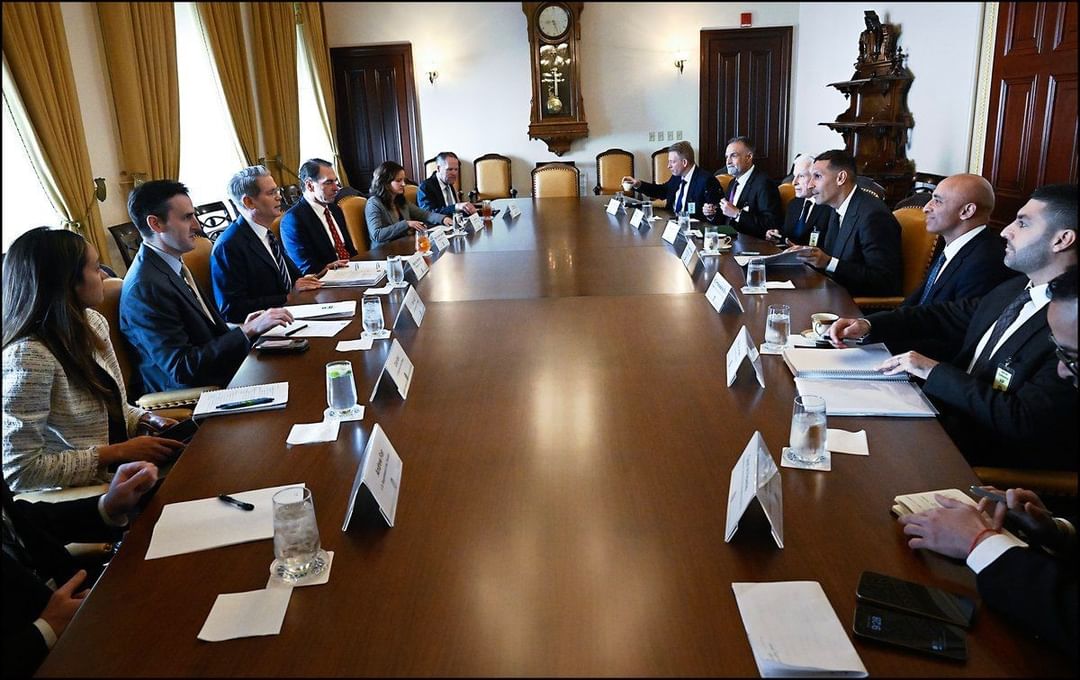 والتقى خلال الزيارة وزير الخزانة الأمريكية سكوت بيسنت وهاورد لوتنيك وزير التجارة ومايكل والتز مستشار الأمن القومي الأمريكي وستيف ويتكوف المبعوث الخاص للولايات المتحدة إلى الشرق الأوسط وديفيد ساكس المستشار الخاص لشؤون الذكاء الاصطناعي والعملات الرقمية وأليكس وونغ نائب مستشار الأمن القومي ونيلز نوردكويست نائب مدير المجلس الاقتصادي القومي.