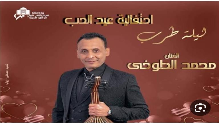 ضمن برنامج حفلات دار الأوبرا المصرية برئاسة الدكتور خالد داغر، يحيي المطرب محمد الطوخي احتفالية عيد الحب، تحت عنوان “ليلة طرب”، علي خشبة مسرح معهد الموسيقي العربية، يوم الخميس ١٥ فبراير المقبل، في الساعة الثامنة مساءً.