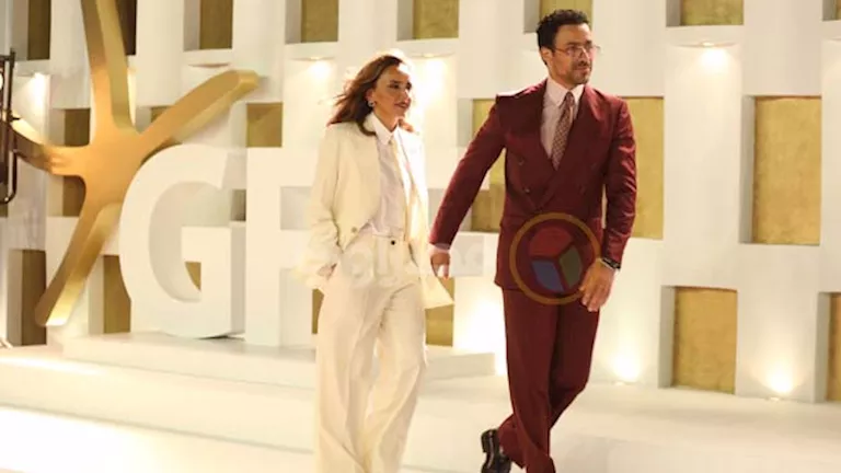 ظهر الفنان أحمد داود ببدلة أنيقة، إلى جانب زوجته علا رشدي التي ارتدت أيضا بدلة رجالي،وخطفا بإطلالتهما الأنظار على اريد كتاربا، والتقطا العديد من الصور التذكارية.