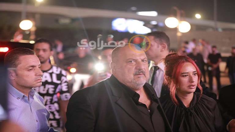 حرص الفنان خالد الصاوي على حضور عزاء منتجي سينرجي الأربعة، بصحبة زوجته