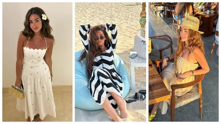 خطفت هنا أنظار المتابعين والجمهور على حسابها بموقع “انستجرام”، بعد ظهورها بإطلالة جريئة ومميزة، مرتدية فستان “تايجر” طويل، وملابس بحر على الشاطئ.