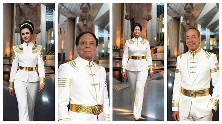 ظهر في الصور نجوم الفن وهم يرتدون ملابس وأزياء فرعونية داخل المتحف المصري الكبير، المقرر افتتاحه يوم السبت 1 نوفمبر المقبل.