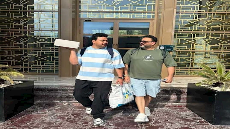 شارك الفنان أكرم حسني متابعيه صورة تجمعه بالفنان مصطفى غريب، استعدادًا لعرض مسرحية “ألف تيتة وتيتة” بالرياض.