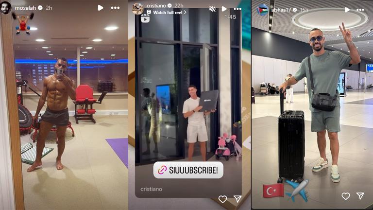 ستوري نجوم كرة القدم.. عضلات صلاح.. احتفال رونالدو وأولاده..