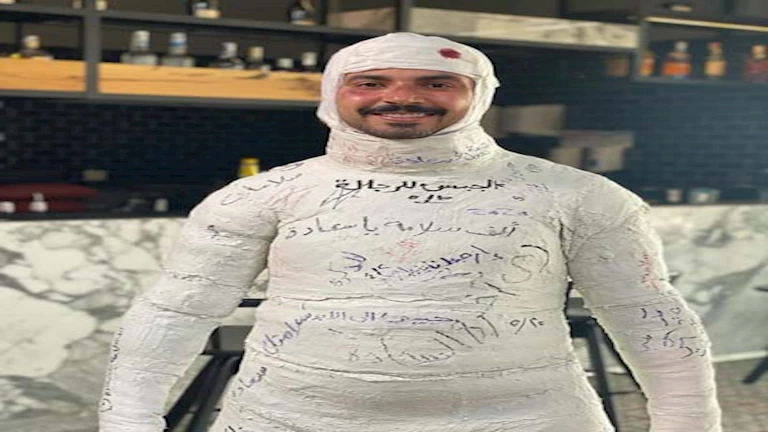 وظهر محمد أنور وهو يرتدي “جبيرة” بالكامل حول جسده، عبر حسابه الرسمي بموقع “انستجرام”، وعلق: “أنا كويس الحمد لله زي الفل”.