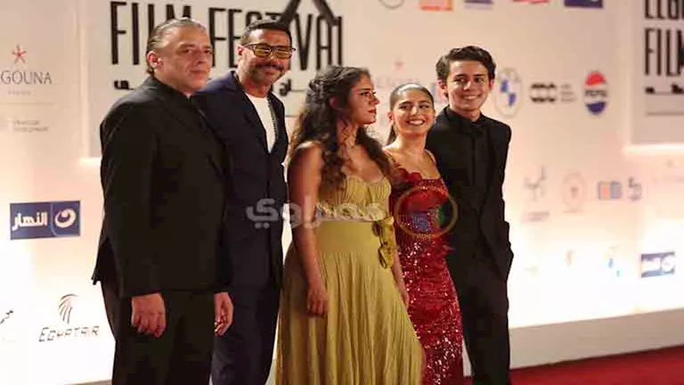 كما حرصت عفاف مصطفى أحد المشاركين في الفيلم، على التقاط صورًا تذكارية بصحبة ابنتها ياسمين على الريد كاربت.