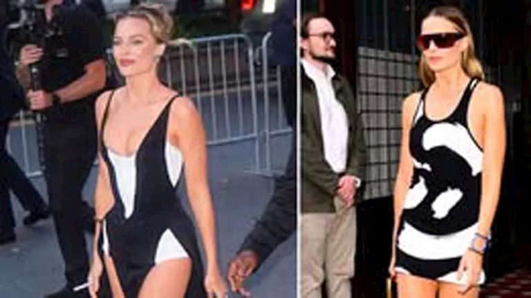 مارغو روبي اختارت فستانًا أنيقًا جدًا من Mugler من مجموعة الكوتور 1998، مع خطوط رقبة عميقة وشقوق عالية تكشف الكثير من الساق.