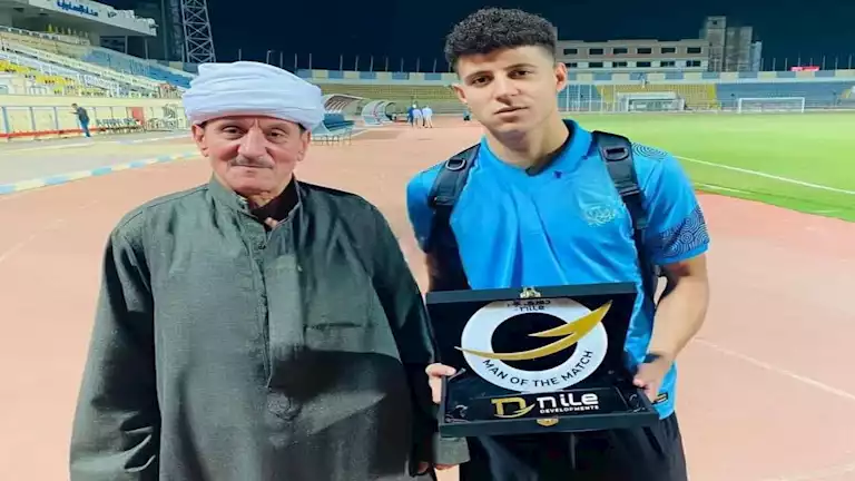 نال لاعب نادي الإسماعيلي نادر فرج إشادة عبر مواقع التواصل الاجتماعي بعد احتفاله من والده بحصوله على جائزة رجل المباراة.