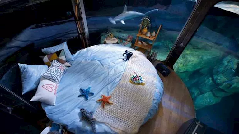 تخيل أن تستلقي على فراشك بينما أسماك القرش تدور حولك، هذا ما يقدمه “أكواريوم باريس” بالتعاون مع موقع “Airbnb”، إذ يتاح لعدد محدود من الفائزين قضاء ليلة كاملة داخل غرفة زجاجية غارقة وسط حوض يضم 35 سمكة قرش.