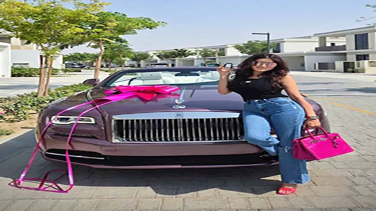 وزُينت إطلالتها بارتداء إكسسوارات مكونة من حلق، وساعة يد، ونظارة شمسية.