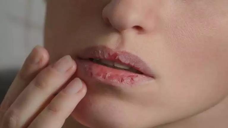 تشقق الشفاه الشائع (cheilitis simplex) يحدث نتيجة الحكة المستمرة أو لعق الشفاه، ويمكن أن يتطور إلى تقشّر أو نزيف.