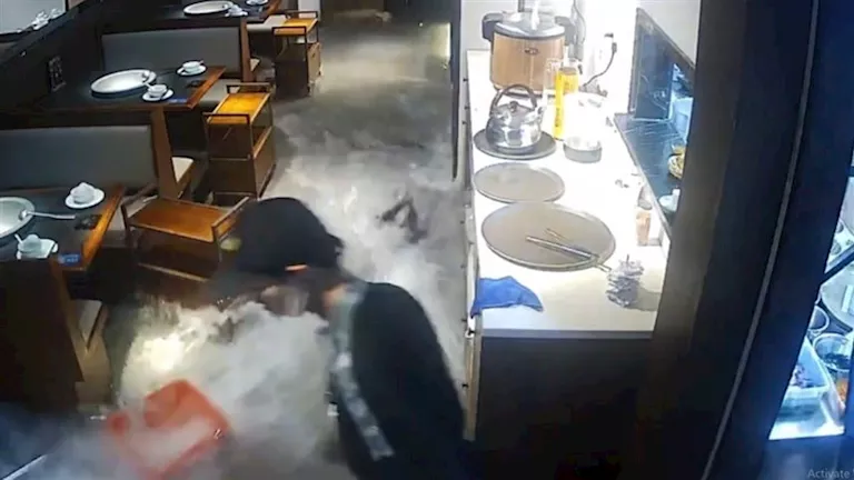 تحولت زيارة عادية لأحد مطاعم المأكولات البحرية في مدينة فوتشو الصينية إلى مشهد فوضوي، بعد انفجار حوض أسماك ضخم داخل المطعم.