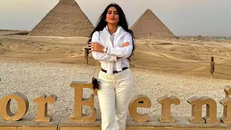 هاجر أحمد تنشر صورا أمام الأهرامات..وتعلق: “حفيدة الفراعنة و