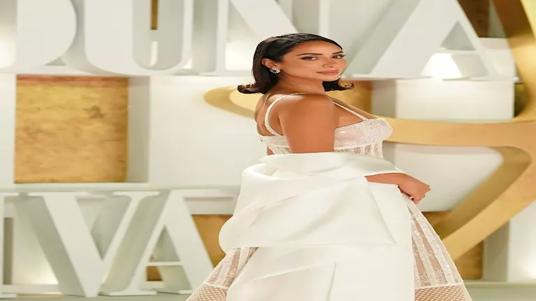 الفستان أبرز رشاقتها بعد فقدان الوزن، فيما اختارت مكياجًا برونزيًا وتسريحة شعر مرفوعة لإبراز ملامحها الهادئة.