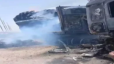 اشتعال سيارتي نقل وملاكي في تصادم على الطريق الإقليمي بالقليوبية