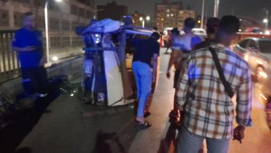 إصابة شخص في انقلاب ميكروباص أعلى كوبري فيصل