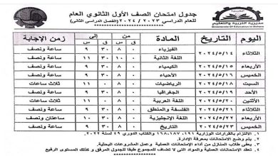 ننشر جداول امتحانات الفصل الدراسي الثاني لصفوف النقل والشهاد