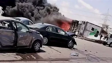 اشتعال وتفحم 4 سيارات.. إصابة 20 شخصًا في حادث مروع على طريق الضبعة بم